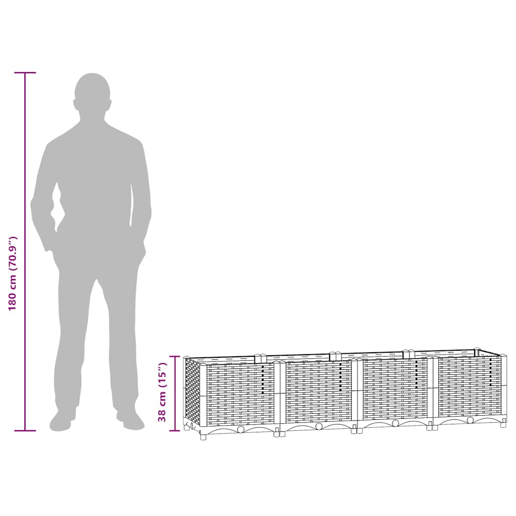 Denne plantekasse er fremstillet af polypropylen, hvilket gør den robust, slidstærk og velegnet til daglig udendørsbrug. Havekassen er dyb og bred nok til at rumme en stor mængde jord, og den giver rigelig med plads til dine planter, grøntsager, krydderurter og blomster. Skab en skøn baggrund for dine planter med dette elegante plantebed!